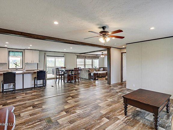 Affordable Country Living on 8 Acres in Braxton! Looking for space and style in the country? This modern manufactured home sits on 8 beautiful acres and offers an open floor plan, natural light throughout, and plenty of room to spread out—inside and out! The heart of the home features a large living area up front, plus a cozy keeping room with a fireplace just off the kitchen—perfect for relaxing or entertaining. The spacious kitchen includes a center island, stainless steel appliances, and a stainless farmhouse sink with a window that looks out over the peaceful backyard. You'll also love the walk-in pantry for added storage. The massive laundry room includes a sink, extra counter space, and its own island. The primary suite includes a private bath with dual vanities, a soaking tub, separate shower, and a walk-in closet. All the bedrooms are generously sized with great closet space. Step outside to enjoy a front deck and a large covered back deck—ideal for grilling, sipping coffee, or just taking in the view. And don't miss the extras: a tractor shed, chicken coop, and storage building are already in place. If you've been searching for affordable country living with style and space, this is the one!