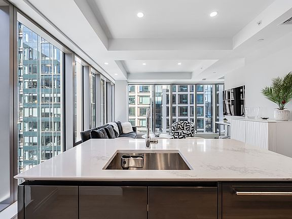 Highly coveted one bed plus den corner residences! Includes 1 valet garage parking and on-floor additional storage. Rarely available, this layout was one of the first to completely sell out at EchelonSeaport. Come see the irresistible floor to ceiling windows that wrap around the entire kitchen, living room and den filling this home with natural sunlight throughout the day. The seller has thoughtfully upgraded this home with additional lighting, a murphy bed in the den, custom closets, and additional storage in the bathroom. EchelonSeaport is resort-living at its finest. Relax by one of the three swimming pools and hot tub, play your favorite game in the sports simulator, treat yourself at the onsite spa, or enjoy fitness including, basketball, pickleball, yoga classes, cardio/weight training as well as the Mind Body Studio including Pilates reformers.