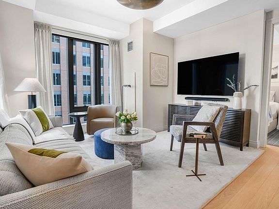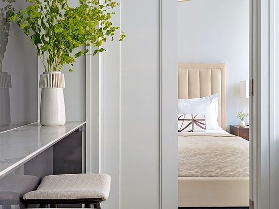 Indulge in harbor views from the comfort of your living space within this designer residence crafted by Celui Designs. Every detail has been thoughtfully considered, from the curated light fixtures to the custom window treatments. The master bedroom features a Juliette balcony and en-suite marble bath. The coastal modern-inspired guest room is perfect for accommodating family and friends. Residents enjoy exclusive access to amenities including a basketball court, fitness center, dedicated yoga and pilates studio, sports simulator, rooftop pools and hot tub, indoor pool, and on-site spa. Immerse yourself in the vibrant social scene, with numerous gathering spaces perfect for entertaining friends and hosting memorable events. Experience world-class dining, shopping, and cultural experiences right at your doorstep. Two valet parking spaces included. Furnishings available for purchase.