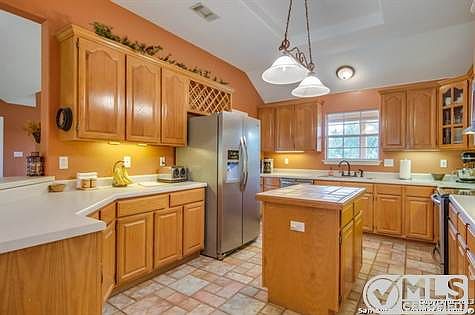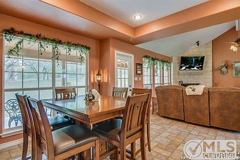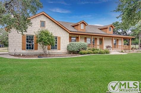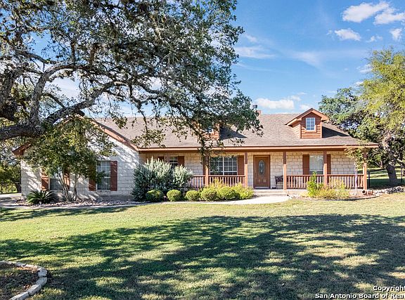Great Texas Hill Country style home in a desirable area! Enjoy this 4 bedroom 2 bathroom one story open floor plan with a beautiful fireplace, the house is on 1.8 acres with a covered back porch with lots of windows to bring in natural light. Back yard is fenced with a detached two car garage/workshop. Perfect location near New Braunfels and San Antonio area. The home is ready for a new owner! Schedule your showing today!