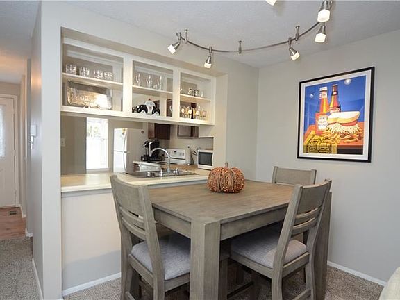 Darling townhouse in move in condition! Updated windows, sliding glass door and storm door. Newer furnace, roof and recently re-sealed driveway. Freshly painted and carpets done in 2018. "See through" kitchen cabinets which let you see into the living room and give a nice open feel. Updated baths. Super clean laundry room with extra shelving. Deck that over looks greenery, gives extra privacy and is perfect for some early autumn grilling.