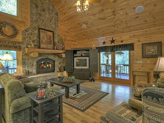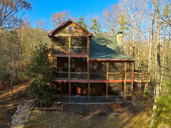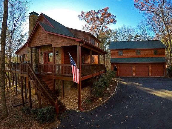 Gorgeous Log Home situated on almost 5 private acres. Priced below market in subdivision! Nestled in the North Georgia Mountains, 15 minutes from Downtown Blue Ridge make this one the perfect escape for you. You are certain to enjoy the abundant wildlife and the different changes in seasons. There is an outdoor fire pit for evening gatherings. The interior is spacious with an over sized fireplace and lots of glass to enjoy the serene setting. A suite on each level with the master suite upstairs has its own private balcony. The all paved access leads to an over sized 3 car garage with storage for all the kayaks, bikes and canoes above it. Bring offers..Furnishings negotiable.