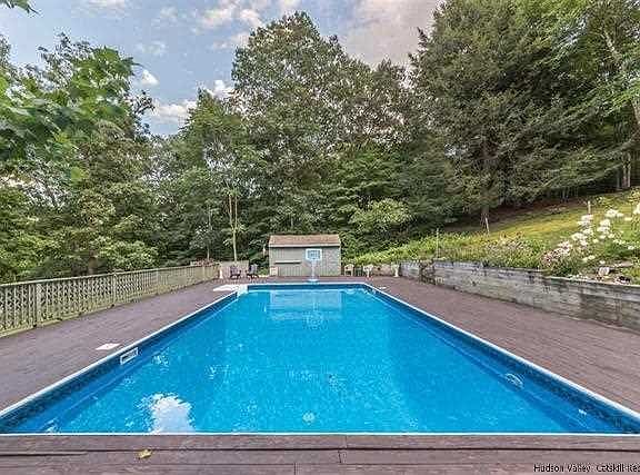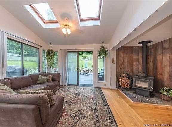 Situated on a quiet country road , this contemporary will WOW you.. On 1.5+/- acres and with an open feeling as you enter..Beautiful updated open gourmet kitchen that is between the den,living room and dining area..Several bedrooms,could be 6 and 31/2 baths makes this a fabulous family get away or year round home. Master suite and two bedrooms on one end of the house , A bedroom and office are on the main level,, There is natural light through out the entire house. Step out on to the deck that wraps around the house and up to the in ground pool..Cedar sauna to chill in after a quick dip. This is a must see!!!