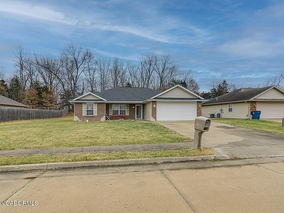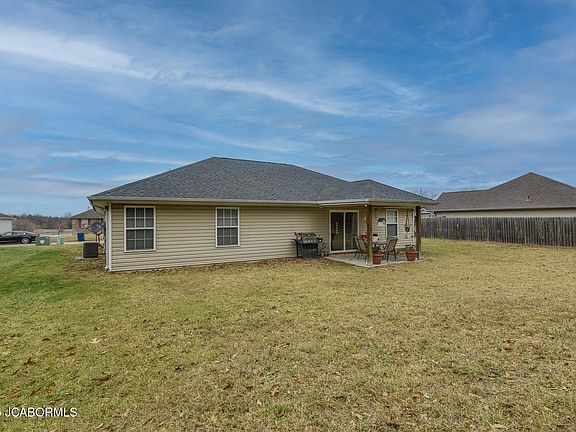 Main level living! Beautiful home on a lovely cul de sac w/a lake view across the street. Great curb appeal w/lovely landscaping & a nice front porch., Open the beautiful front door w/leaded glass to enter the open floor plan home. Living room features a double tray ceiling w/double crown molding, recessed lighting, blinds, & carpet. It opens to dining room w/an octagonal tray ceiling that leads to a covered patio w/ceiling fan providing privacy in the back by the tall privacy fences on each side & a wooded view across the back. Kitchen features a breakfast bar, gorgeous dark cabinets w/room above for decorating, tile floor, walk-in pantry, crown molding, matching cabinets, & chest, Kitchen appliances convey. There are matching cabinets in the laundry room .w/ hang rod behind. 2 car garage. Water heater new in 2020. Home has split bedroom plan. 2 bedrooms & a bath on one side & a primary suite on the other. Primary has a walk-in closet, tray ceiling, crown molding, & primary bath.