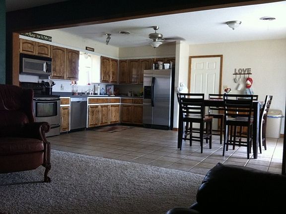 Remarkable 3 bedroom home with open kitchen/living area, covered patio, and storm shelter in the large backyard.
