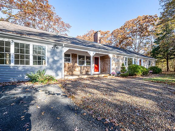 Nestled in a wooded area bursting with Fall colors, this charming 3 bedroom 2 bath 1600+ sq ft home will embrace you in a warm welcome. Superbly located between Lawrence and Triangle ponds, a 3 minute drive from The Ridge Golfing Club, and less than ten minutes from both the Cape Cod airfield and many gorgeous conservation areas, it's a peaceful berth in a hectic world. Beautiful oak hardwood floors glow in the natural light pouring through the windows. The walls have all been painted with fresh neutral colors, making every room feel airy, open, and spacious. Attached to the first bedroom is a gorgeous balcony looking at the large yard and wooded area, a perfect place to watch all four seasons of nature's pageantry. A large master bath and second bathroom round out this delightful home. Come view this wonderful charmer today!