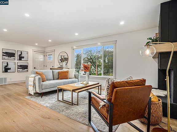 Remodeled 4 bedroom, 2 bath mid-century Lakewood rancher features a cozy living room adorned with a wood-burning fireplace that seamlessly connects to the kitchen and dining space. A well-appointed kitchen featuring custom cabinets, quartz countertops, a 7’ waterfall island and GE Café appliances, including a double oven gas range and a built-in microwave. The dining area opens to the backyard creating a perfect setting for indoor-outdoor entertaining. The primary bedroom is a haven with vaulted ceilings, large windows, walk in closet and a transition-less floor leading to the luxurious primary bathroom. The oversized curb-less shower creates a space to revive and refresh. 1-year home warranty! Conveniently located near top-rated schools, 135 Summit Road is walking distance from downtown Walnut Creek’s Broadway Plaza, shopping, Shell Ridge hiking trails and Howe Homestead and La Rieu parks. Close to BART and Hwy 680.