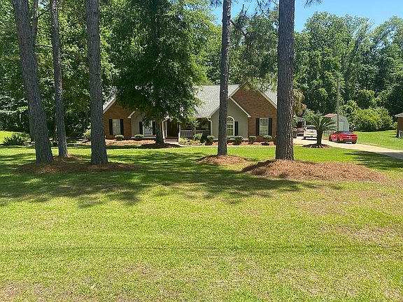 Gorgeous brick and stucco house in Ivy Hill Subdivision on a large, beautiful lot with great natural features. House has 4 bedrooms, 3 full baths, perfect for any large family. Plenty of space to entertain with a large kitchen(lots of counter and cabinet space), formal dining area and a kitchen dining area with a view. New roof, A/C system, water heater, faucets and toilets. Newly rebuilt giant deck that runs the entire length of the back of the home. Deck also has covered area that can be accessed from the master bedroom. Very nice shaded front porch as well. Oversized 2 car garage with shop space and storage room. Big utility building with an additional single car garage. Neighborhood includes stocked pond with gazebo.