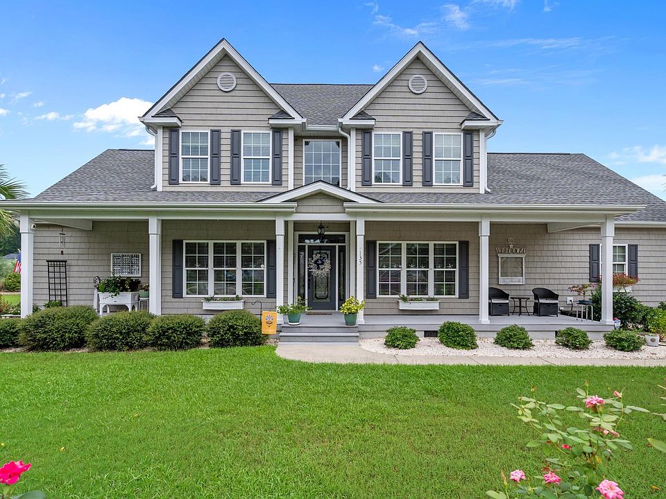 Back on the market at no fault of the sellers. Don't miss it this time. Welcome to this stunning custom-built Low Country home located in the charming Windsong community! Enjoy Southern living at its finest with a huge front porch, and an enchanting backyard retreat featuring a covered porch, paver patio, fire pit, koi pond, and meticulously landscaped grounds. This 4-bedroom, 3.5-bath beauty offers an ideal layout with a first-floor primary suite featuring direct access to your private backyard oasis. Inside, you'll find soaring cathedral ceilings in the main living area, complete with custom built-ins and a cozy gas fireplace, plus a Juliette balcony that adds character and charm. The home also includes an office with glass doors and a spacious bonus room, perfect for flexibility. The first floor and backyard have hardwired speakers throughout to play the radio. There is a security system and hurricane fabric for peace of mind. Engineered hardwood floors flow throughout the main living spaces, adding warmth and elegance. Located just minutes from Little River, Calabash, and North Myrtle Beach, you’re close to top-notch dining, shopping, golf, and entertainment! Be sure to check out our 3D immersive walk through tour and professional property video.