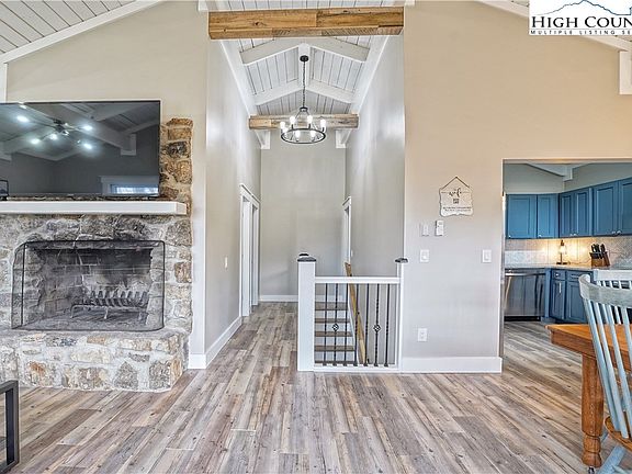 "BLUEBEARY CHALET" is ONE OF A KIND! This 4 BEDROOM - 2 BATH classic chalet has been totally RENOVATED! Big WOW factor when you enter this chalet! Only 3 STEPS to entry and both decks have been rebuilt and expanded for entertaining, star gazing and wildlife watching! The main level affords an abundance of natural sunlight & has an open floor plan w/ vaulted ceilings throughout. The great room has a wood burning fireplace and the kitchen has all new appliances, granite counters, new cabinetry and a stone backsplash. All new lighting, plumbing fixtures, interior paint PLUS a MINI SPLIT SYSTEM for A/C & HEAT. There are 2 BEDROOMS & and shared bath on the main level, one of the bedrooms has 2 sets of CUSTOM built bunk beds. On the lower level there is a GAME ROOM furnished with a pool table, wood burning stove insert and a sofa sleeper for additional guests. There are 2 BEDROOMS and a shared full bath. Both levels have large rear decks to enjoy the SEASONAL VIEWS, listen to POND CREEK below and sit by the fire pit to enjoy an evening of storytelling & smores! Perry Park is a short 1 minute walk from the house! Being sold FULLY FURNISHED!