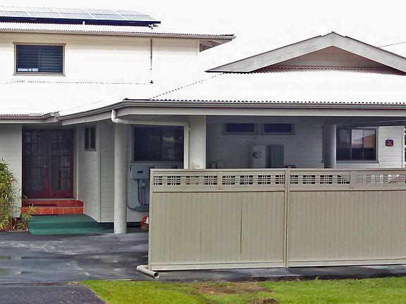 Beautiful Hilo Home with views that are extraordinary. Large 6 bedroom 6 bath single family home with panoramic ocean and mountain views, multiple entertaining areas & maid /grandmother's ensuite. Main floor features 3 bedrooms, Game room with wet bar, 3 baths, laundry, open concept kitchen/dining/living with a large wrap around deck on 3 sides with large balcony that has access to beautiful tropical back yard. Downstairs basement has large storage area and private drive way. 2-1 bedroom with den and bathroom. There is dual access for your mother in-law, college student or large family. This home is also environmentally friendly. Owner in 2012 installed a power purchase agreement to run a solar voltaic system. With over 4000+ in living the monthly set rate is $265 plus $27 Helco bill. In addition, installed in 2010 a solar solarhart water heater. Home also has on demand water heater throughout as well as gas so home is very environmentally friendly and efficient.