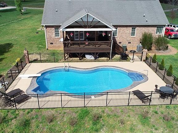 Custom built all brick veneer home sitting on 2.4 acres with creek. Great outdoor entertaining space with 14x22 covered deck overlooking the 18x37 lagoon mineral pool. Built in 2017, the pool includes a 2 person buddy seat, oversized concrete surround and is landscaped beautifully. Interior features include hardwoods throughout, 10ft tray ceilings in living room, gas logs with built-in cabinet surround, tile in bathrooms, granite throughout, master vaulted ceiling, and picture molding throughout main living area. No HOA.