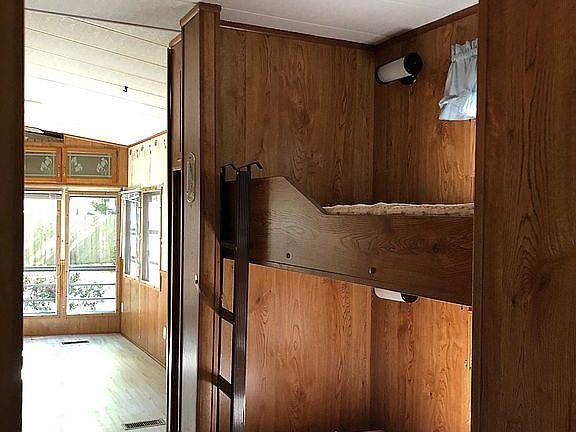 This home has 1 bedroom, new laminate floor throughout the unit and all rooms have been newly painted. There is a large deck off that is accessible from the sliding glass doors.