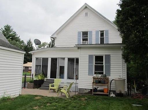 Charming New Englander!!Quiet Neighborhood, Dead end street! walk to the Piscataquog river park and dam. 3 bedrooms, nice eating area, galley kitchen, and separate family room. Upstairs also has a nice sitting area. The laundry room is on the first floor. A 3 season porch overlooking fenced grassy back yard, plenty of room to play! Detached Garage with storage. Agents see remarks.