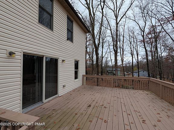 Well maintained 4BR/3BA Colonial on 1.04 acres in the Timber Hill Community, of Henryville. Spacious 1,952 sq ft home features an updated eat-in kitchen, stainless appliances, and vinyl plank flooring. Bright living and dining areas flow to a large deck overlooking a private wooded yard. Upstairs offers a vaulted-ceiling primary suite plus three bedrooms; garage has been converted to a flexible 5th bedroom or office. Full unfinished basement provides expansion potential. Enjoy the peace of Timber Hill Association offering paved roads, outdoor pool, tennis courts, and a relaxed Pocono setting in NO-STR Paradise Township. Just minutes from I-80, Camelback, and Mount Airy Casino. Perfect for full-time living or a weekend getaway!