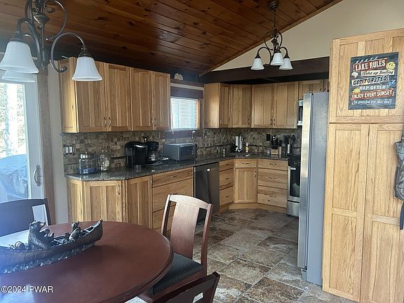 Come get peace of mind with this Tanglwood Lakes 4-bedroom, two-bath contemporary home. This home is well maintained and boasts a newer roof, a well maintained septic system, a brand new HVAC system (propane furnace and heat pump), new 40 gallon water heater, a large Trex deck and railing with rain escape so you can enjoy the paver patio below even when it's raining. Also, granite kitchen counters, full finished basement with large family room. Wood burning stove in upstairs living room. Tanglwood Lakes also boasts golf, lake rights, boat slips on Lake Wallenpaupack (waiting list), beach area, tennis and much more. Call for your appointment today.