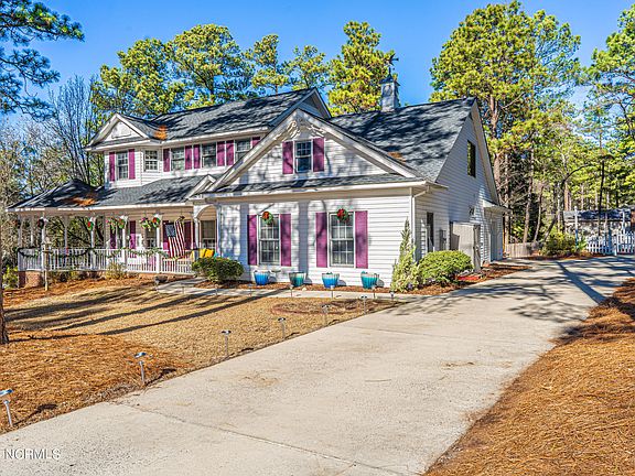 Not your average cookie cutter home! This 4 br / 2.5 bath home sits on a large .50-acre cul de sac lot in desirable Sandhurst. From the inside out it is like no other. Many upgrades and special features! (List is in the pictures.) When you arrive, you will immediately be drawn in by the long, covered front porch with a charming gazebo. The interior is just as enticing. The floor plan includes a spacious foyer to greet your guest and lend a little privacy from the living area. The main level includes a formal living room/flex room, a formal dining room, family room, and owner's suite. The kitchen is large with an eat in area featuring an enormous picture window overlooking built in planter boxes/table on the rear balcony. The kitchen has been updated with gleaming Quartz countertops, Travertine tile flooring, SS appliances, new lighting and copper backsplash among other things. Hardwood and tile flooring is thru out the home while the half bath has a hand laid floor made of pennies!! You will get the lost in the size of the owner's suite and it also has a nook for a home office or sitting area. The owner's bath has been beautifully updated with striking finishes to include copper sinks, a soaking tub and gorgeous tile shower. The mud room has that designer touch with vibrant wall paper and a ''drop zone'' for shoes and coats. The washer & dryer which will remain are now located in the garage. They can be moved back into the mud room easily. The current owners enclosed the carport to the size of a 2 car garage recently. The upstairs offers 3 bedrooms and an additional flex room/ home office overlooking the family room below. 2 bedrooms have a Jack & Jill bath. The exterior of the home is maintenance free siding with eye catching details such as the scroll work on the porch eaves and the cupola with weathervane. Not only is it pretty but it is practical. The owners have added a whole house water filtration system located on teh side of the house as well as wired ... the home for a generator hook up. They are also leaving a generator. Details in the list. They also enlarged the rear concrete balcony and added a built in table with planter boxes. Ideal for the gardener and also for enjoying al fresca meals on nice Carolina days. There is loads of storage inside and out. There is also a masonry patio with curved bench seating and a fenced concrete pad that the owners would set up an above ground pool for the kids in the summer. There is electricity run to it. Truly a must see!!! So convenient to Bragg and the charming town of Southern Pines and all it has to offer. Will not last long!