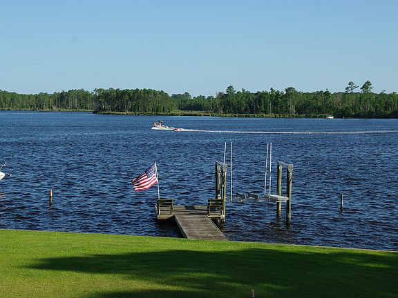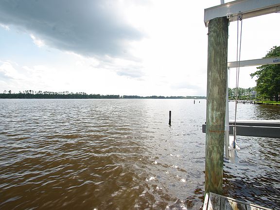 Stunning water views from this 4-bedroom home on Pungo Creek! Enjoy swimming, fishing, boating, and more from your own pier with dock and boat lift. This beautiful home boasts an open concept living/dining/kitchen area with engineered hardwood floors and a gorgeous cathedral ceiling covered in juniper wood. 3-car garage, large rec room, and half bath on ground level. No restrictions or HOA fee!