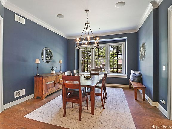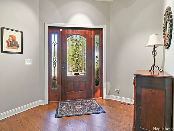 Welcome home to this gorgeous custom residence located in the heart of the village. This home checks every box for luxurious living. As you step inside, you are greeted by soaring 10-foot ceilings and stunning hardwood flooring. The generous-sized dining room is perfect for entertaining guests. The Great Room is exceptionally spacious, featuring a beautiful stone fireplace, a bar area with wine racks, and a wine refrigerator. It's a wonderful space to unwind or gather with friends and family. The newly remodeled kitchen is a chef's dream, boasting custom white cabinetry, quartz countertops, commercial-grade appliances, and a cozy eating area. Completing the first level is a private study/office with custom bookcases, ideal for working from home, and a lovely powder room. Upstairs, you'll find incredible new hardwood flooring throughout all the bedrooms. The expansive Primary Suite offers a spa-like bath and an abundant walk-in closet. The second bedroom features an ensuite bath, while the third and fourth bedrooms share a Jack & Jill style bath. Additionally, there's a charming loft area, perfect for a reading nook or play area. The finished lower level is an entertainer's paradise, with a Rec Room, Game Area, Bar, Bedroom Five, an Exercise Room, and a Full Bath, plus ample storage space. Outside, the back patio boasts a beautiful stone fireplace, perfect for enjoying chilly evenings. The spacious, fenced yard is ideal for outdoor activities. The location is fabulous, just minutes away from the downtown area, Metra Station, restaurants, schools, and easy access to the highway. Turn the key and fall in love with your new home. All the work has already been completed for you.