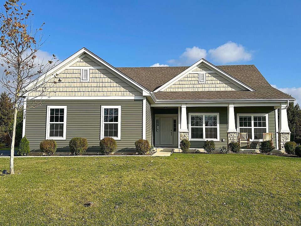 This Gorgeous, Prairie View, Move-In-Ready, 3 BR, 2.5 Bath Craftsman-Inspired Ranch Home w/ 3 Car Garage w/ EV Charger is Better-Than-New w/ its upgrades, stylish colors and immaculate maintenance! The covered front porch welcomes your guests into your fabulous home w/ its rich, engineered wood floors. The Great Room features a soaring cathedral ceiling and beautiful gas FPL and is open to the island kitchen w/ SS appliances, granite countertops, breakfast bar and pantry. The DR overlooks the big, tree-lined yard and opens onto the expanded patio for easy entertaining. The Primary Suite boasts a clipped cathedral ceiling, French Door to the patio and ensuite bath w/ tile floor, dbl sink vanity, W/I Shower and WIC. The huge LL is stubbed for a bath and ready to be finished for more space.