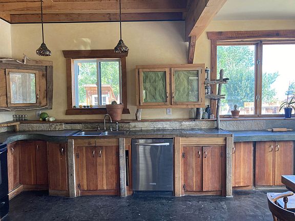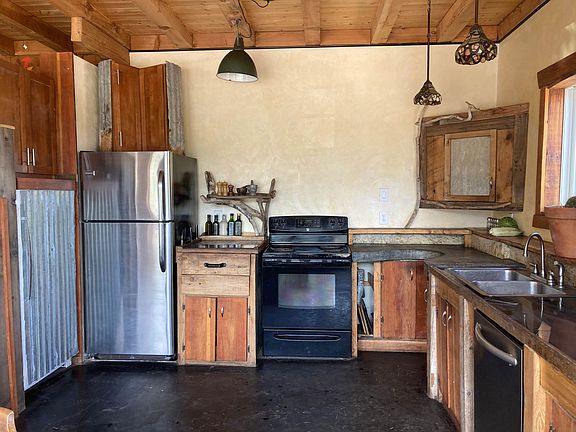 A custom built home with sustainability in mind. The home incorporates passive solar design and has a 3.2 KW per hour grid tie photo voltaic system. The home is heated energy efficiently with a wood burning stove and PEX radiant floors heated with an electric water heater. The current owner uses only two cords of wood to heat the home for the winter. The solar generates almost 2x the amount of electricity the home uses. A large 1500 gallon septic allows for an additional two to three rooms or additional dwelling unit. Utilities and cost of ownership are extremely low. Water cost is a set $55 a month and comes from a community water system that uses non-chlorinated water. The plumbing is all lead-free copper plumbing. Landscaped with various fruit trees, hops, flowers and garden boxes. The fenced yard has a chicken coop and two storage sheds. There are five parking spots and space for an RV. Located just steps form Mill Creek and BLM land with access great fishing, hiking and back country skiing. Sustainable living, in a quiet community, close to all your favorite outdoor activities.