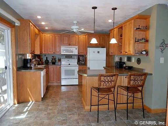 This sprawling ranch home has wonderful curb appeal & nearly a one acre setting! Updated kitchen has breakfast bar & sliding glass door leading to a private back deck. Spacious living room with gas fireplace and large family room w/ cathedral ceiling & sliding glass door providing an inviting view of the in-ground pool & patio! MBR has cathedral ceiling & large private bath. Enjoy summer days at the pool side patio or relax in the shade of the new deck with pergala. Attached 2-car garage, 2 blacktop driveways and storage shed. Convenient location. Call today for appointment to view.