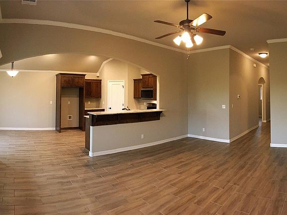 10' ceilings in entry hallway leading to wide open living room. 9' ceilings in kitchen and dining area. Wide open floor plan w/ split bedrooms. Granite in the kitchen and bathrooms. Walk around master closet with Jacuzzi tub in the center. Oil rubbed bronze fixtures throughout the house. In a great family neighborhood close to schools and stores. New construction house in pristine condition that has never been lived in. Stainless steel appliances that are brand new. Porcelain hard wood tile through out.