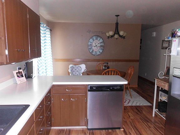 Super clean and attractive home in Dimock, SD. Spacious 4 Bedroom, 1 & 3/4 bath home. Includes a large Master Bedroom w/walk-in closet, updated Kitchen w/stainless steel appliances, patio doors to the concrete patio, & a large living rm. Main Floor Utility + hook-ups also in the finished-poured basement. 200 AMP Breakers,Heat Pump w/fuel oil as back-up, Family rm, & lots of storage. HUGE D-Garage.