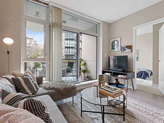 Westcoast urban design is showcased at its finest in the heart of Lower Lonsdale in Capstone- a rare boutique concrete lowrise gem. This chic treetop suite overlooking a charming courtyard pathway is modern, airy & functional. The super-efficient layout has bedrms on opposite sides of an open plan & a lovely feel with 9 ft ceilings of wall to wall glass. The large covered balcony is a lush, blossoming oasis. The kitchen boasts s/s/ appliances, gas range & granite breakfast bar. Primary bedrm hosts a WIC & tasteful ensuite bath. Comes complete with insuite laundry, locker & parking. Pets & rentals allowed too! Impressive lobby & lounge. A quick stroll to restaurants, groceries, recreation, Lonsdale Quay & everything that makes Lolo one of the best communities in the world to live in!