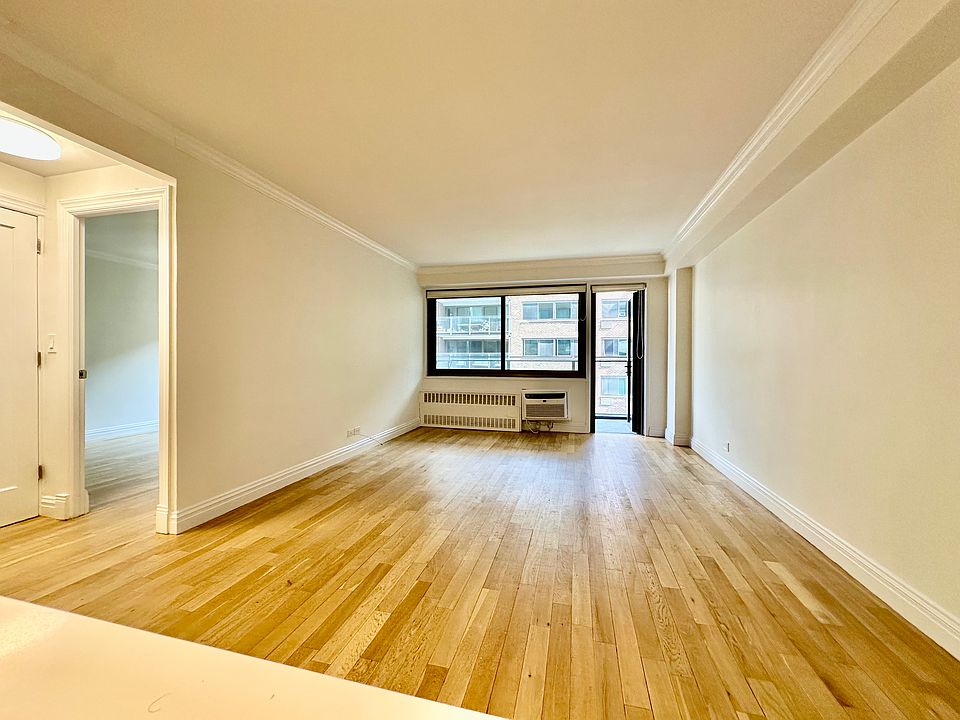 This spacious one-bedroom offers a clean, functional layout in one of the Upper West Side's most ideal locations. The apartment features a large kitchen, hardwood floors, generous closet space, and a private balcony. The full-service building offers a doorman, fitness center, and unbeatable access to Whole Foods (right across the street), Central Park, express trains, and the best of the Upper West Side.