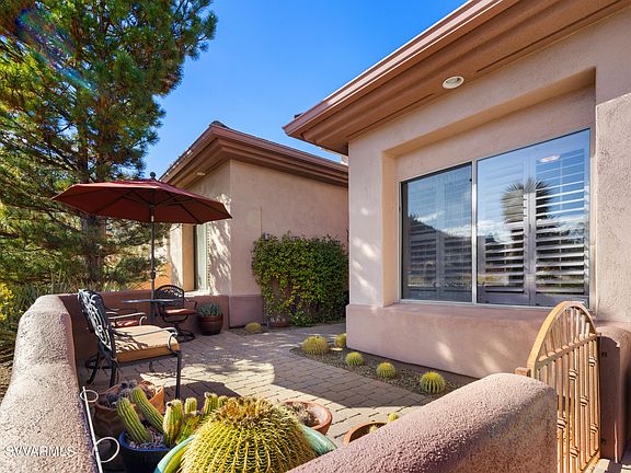 Welcome to your slice of paradise nestled in the heart of Sedona's breathtaking red rock landscape. This meticulously maintained home located at the famed Sedona Golf Resort # 12 fairway offers an unparalleled combination of luxurious living and awe-inspiring natural beauty. This 2,737 sf 4 bedroom/3 bath home is the spacious Prescott floor plan. As you step through the grand entrance, you are greeted with elegant finishes and panoramic views. The spacious living area features a cozy fireplace, and oversized windows that flood the space with natural light. The open kitchen is a chef's delight, with upgraded appliances and ample cabinet space. The outdoor area has multiple seating areas, an in-ground spa and summer kitchen. Close to hiking, spa and restaurants.
