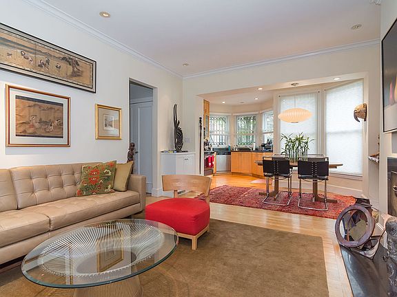 Sensational 2 bedroom plus office, 2-1/2 bath parlor duplex recently upgraded with designer lighting and custom finishes throughout. Gracious entry has double glass doors leading in two directions. One set of doors takes you to perfect den or home office with gas fireplace. The other opens to stunning living/dining room with gleaming hardwood floors and wood burning fireplace. Renovated kitchen offers quartz counters, backsplash and stainless steel appliances with door to lovely deck and stairs to private landscaped garden and direct access parking. There is a convenient powder room on the living level. Downstairs are two spacious bedroom suites, including master with brand new marble bath with soaking tub and dual head walk-in shower, plus radiant heated floors and huge fully built-out closet. A beautiful home on quiet, tree-lined side street in the heart of the South End!