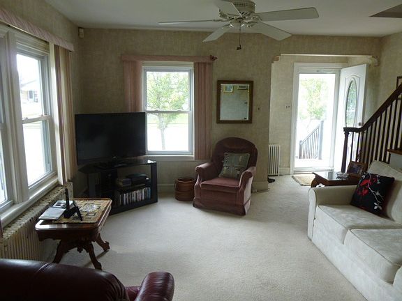 Vintage Cape home on 50' X 100' 1st floor Living room, Dining room, Eat-in Kitchen with skylight, two bedrooms and full bath, 2nd floor additional living room, bedroom and half bath with what use to be a kitchen area. Open wood deck, two electric meters, Detached one and a half car. For now Appointment please.