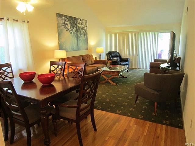 Beautifully updated, spacious contemporary 1 Bedroom + loft - (perfect for office or 2nd bedrooom) - end unit condo with cathedral ceilings and a great open floor plan. Features include pretty updated ceramic tile kitchen and bath, huge open living room and formal dining area with OAK FLOORS THROUGHOUT (NO CARPET) and sliders to deck overlooking grassy area. Central air, washer/dryer in unit, huge private storage room (10` X 20`) downstairs in same building. Plenty of convenient parking at front door. Top rated Nanuet schools. Walk to shopping, transportation and seconds to all highways. Max 3 occupants. PLEASE NOTE THIS IS OFFERED FOR OCT 15TH OCCUPANCY - BUT IT COULD BE A WEEK OR 2 LATER. Please look past clutter - CONDO WILL BE PROFESSIONALLY CLEANED AND PAINTED AND RESTORED TO GREAT CONDITION! Photos are either of a similar unit or the actual unit before the current tenant moved in a few years ago. An indoor cat ok for add`l $25.00/month rent (Listing 6916777 Confirmed 9/5/2019.)