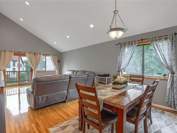 Meticulously kept updated unit that is move in ready. The spacious kitchen is complete with granite countertops and stainless steel appliances. The oversized living room and dining area with pristine hardwood floors, vaulted ceiling, skylights and a deck are prefect for entertaining. The master bedroom also with a vaulted ceiling and dual closets provides the perfect getaway. An updated master bath and stacked laundry start you on your way to the second floor loft office which overlooks the living room. The complex provides a lockable extra large storage area in the basement, two assigned parking spaces and a park like outdoor space. Close to shopping, highways, transportation, parks and schools