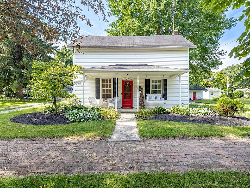 Small town living at its best!! You will feel right at home in this 3 to 4 bedroom in the heart of Milford Center. Original hardwood floors, open kitchen/eating space, living room, a den that can also serve as a 2nd bedroom, and first floor utility. 2 bedrooms upstairs with built-ins and some original hardware. Over-sized lot with mature trees, large garage and Old Town character brick sidewalks!