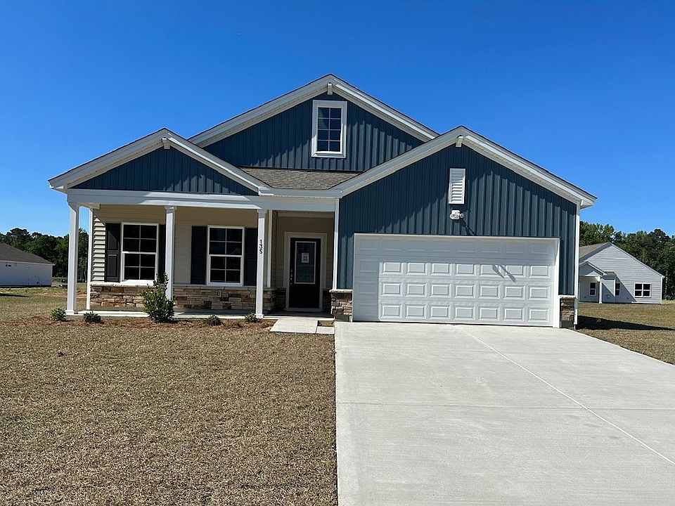 Introducing the Dorchester plan! This unique floorplan offers a very spacious primary bedroom equipped with a boxed ceiling as well as two secondary bedrooms and a formal office enclosed with french glass doors. Kick back and enjoy movie nights in your family room with a natural gas fireplace roaring. Head in to the kitchen that overlooks the eat-in area and family room ideal for cooking and hosting for entertainment. This home sits on a large lot at a 1/4 acre, so enjoy some relaxation under your long front porch as well as a rear covered porch!