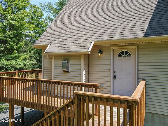LAKE WALLENPAUPACK CHALET WITH LAKE RIGHTS - This move-in ready 4-bedroom, 3-bathroom home is ideal both for summer vacation fun or as a full-time residence. Nestled within the aptly named ''Lake Wallenpaupack Estates,'' this property boasts lake access, private boat docks, a private boat ramp on Lake Wallenpaupack--the Pocono's largest power boating lake--and a plethora of amenities for year-round enjoyment.Step inside and be greeted by an abundance of natural light pouring through expansive windows, highlighting the home's inviting open floor plan and cathedral ceilings. Relax and unwind in the spacious living area by your gas fireplace, or entertain guests with space and flexibility.Features:Luxurious Ensuite: Featuring a spa-like bath and a spacious walk-in closet, this master retreat provides the perfect sanctuary.Versatile Loft: This additional living space offers endless possibilities - a home office, a recreation room, or even a guest suite.Full Finished Walkout Basement: Stay fit and healthy year-round in your very own private gym, additional living room, or go all out with a large recreation room with all of the fun and games you could imagine! The basement also features a propane heater for added comfort and warmth.Large Deck and Spacious Yard: Host unforgettable barbecues and create lasting memories with family and friends.Separate Laundry Room: Conveniently located with ample space for all your laundry needs.Unmatched Convenience and AmenitiesDual-Lot Property: Enjoy added privacy and the potential for future expansion.Horseshoe Driveway: Easily maneuver and park your boat with the convenient horseshoe driveway.Room for 2 Boats: With ample parking space and lake rights, this property caters to water enthusiasts.Private Boat Docks: Exclusive access to private boat docks on Lake Wallenpaupack, perfect for mooring your boats.Private Boat Ramp: Exclusive access to a private boat ramp on Lake Wallenpaupack, perfect f