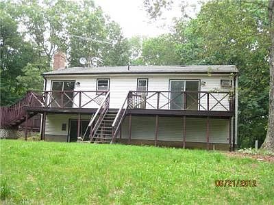 quiet, private location on 3+ acres. house needs TLC and flooring throughout. large deck, above ground pool, beautiful stone fireplace in familyroom, dirt driveway