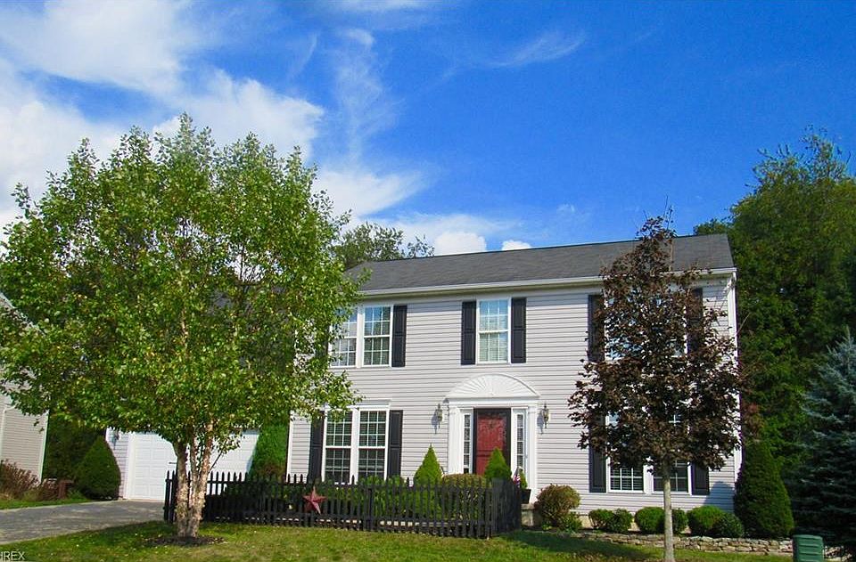 Awesome home with many upgrades - gorgeous cherry cabinets in kitchen with island that has tile top, tile backsplash and stainless steel appliance, pantry closet, and slider that leads to a 16x12 deck with built in storage shed underneath it, plus upgraded railing - overlooks woods and 12x10 outbuilding. Living room with glass french doors off the 2 story foyer, and formal dining room. The oversized master with 2 walk in closets and large master bath with both a garden tub and separate shower. The master bath has cherry cabinets, and double sinks! Finished walk out basement with a large rec room and a nice size third bath with shower and custom tile design. The french door off the rec room walk out to a private patio! Additional extras include high efficiency furnace and oversized heated garage with an extra 2 feet, drain and hot and cold water. Second floor laundry. This meticulous home is located in Creekside estates on a fabulous lot the views into the woods and not into neighbors!! Revere schools, close to shopping, expressways and schools. Exclude pan rack over island.