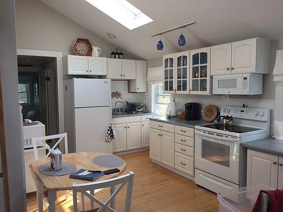 Yacht Club Vista! A rare opportunity to own this adorable detached condo on the water on Saunder's Bay at Lake Winnipesaukee with your own deeded dock space. A truly unique property as this was an old fashioned resort when it was originally built in the early 1900's and was converted into condo's in the 1980's. The views across the lake are breathtaking and on a clear day, you can see Mt. Washington in the distance. The cottage has water views from the main living area as well as from the screened porch. The open concept living room and kitchen have vaulted ceilings with three skylights bringing the outside in. This unit is one of the few that has a second bathroom. Recent updates include a renovated main bathroom with granite counter top, tiled floor and bathroom fan; a new Toyotoma kerosene heater, new skylight in living room, renovated master bedroom closet with barn door, new electric stove, new kitchen counter tops, stacked washer/dryer hookups in 2nd bath, and a fresh coat of paint throughout. Additional common amenities include a sandy beach with a shallow roped swimming area, a large sunny grassy area for playing games, a boat launch, shady grassy area with swings, in ground pool and tennis court, a kayak rack and gazebo with picnic table. Located within walking distances to Silver Sands Marina, Mountain View Yacht Club, Bank of NH Pavillion concert venue, Sawyers Dairy Bar and Patrick's Pub. It doesn't get anymore convenient or affordable for a waterfront summer home on Winnipesaukee! Please call for an individual appointment.