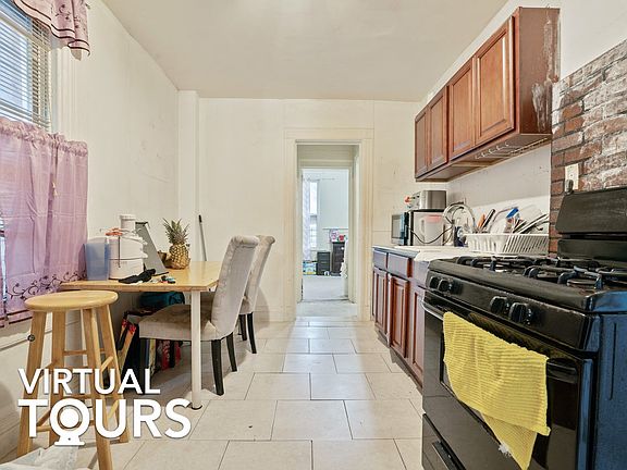 2 unit Brooklyn investment property with huge income potential! Enter the 1st floor unit to find a walk-through kitchen with tile flooring, brick accent, dark wood cabinetry, and dining area. This unit features 2 light filled bedrooms with carpet and sand colored walls, and a bathroom with a tile lined stand up shower. A multi-functional living space serves as a divider between the primary bedroom and the rest of the home for tons of privacy! Head up the wooden staircase for the 2nd unit. You'll be welcomed by a carpeted and open living/dining space with large windows and open access to the rest of the home! The kitchen sits on one side and features crisp white cabinetry, wood countertops, tile flooring, and a gas cooktop. The other side of the home contains three bedrooms (one of which has cozy wood wall paneling and hardwood floors), one full bathroom with a pedestal sink and tile lined shower/tub combo, and an additional half bath! This home also includes an unfinished basement that could be used for storage or transformed into an additional rental unit. You'll find a cement patio and yard space in the backyard that is perfect for gardening! Located in close proximity to dining, grocery, parks, highways, public transportation, and JFK airport. Buyer should verify all information.