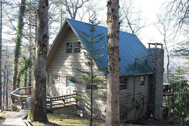 Great buy on this 2 bedroom, 2 bath chalet with large loft for extra sleeping or family space. Home is located close to lake and could have some views with a little clearing. Living room is spacious with rock fireplace. Home has a lower level with family room, laundry, ample storage, bath, and second bedroom. Home offers large deck, fire pit and storage shed. This one will make a great vacation or retirement home with a little TLC. Most windows have been replaced with insulated windows. House is sold As-IS. Yr. built 1973 EYB 1985. Jackson Co. Schools.