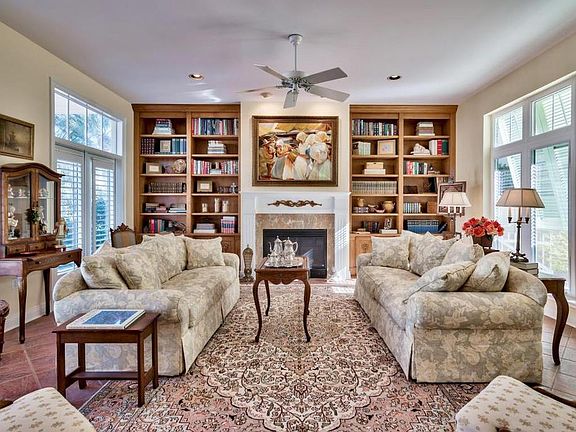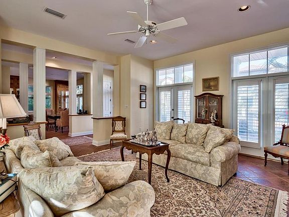 This one owner custom home in The Village of White Cliffs is situated on a corner lot with easy access to the neighborhood private beach access and Gathering Center, community pool and tennis court. A thoughtfully designed first floor has a formal living room with gas fireplace and built in bookshelves, a dining room, a large kitchen opening to outdoor courtyard and a family room with half bath. The elevator serves second floor has all four bedrooms and office with a fireplace. A large porch, courtyard and huge covered balcony provide plenty of outdoor area but little yard to care for. The oversized one car garage and third floor finished space provide loads of storage. This non short term rental neighborhood is a welcome gated enclave on 30A for primary and second home owners.