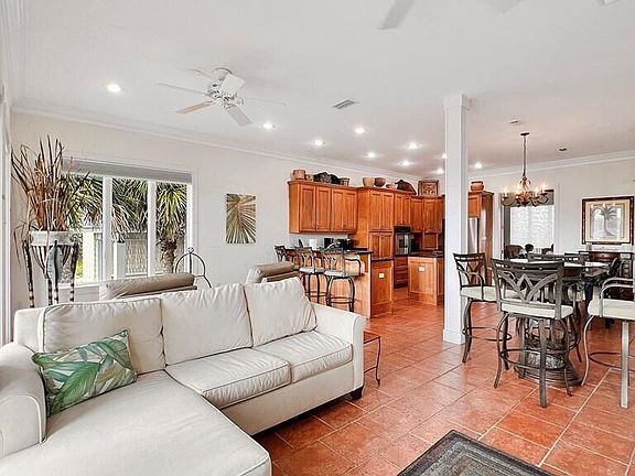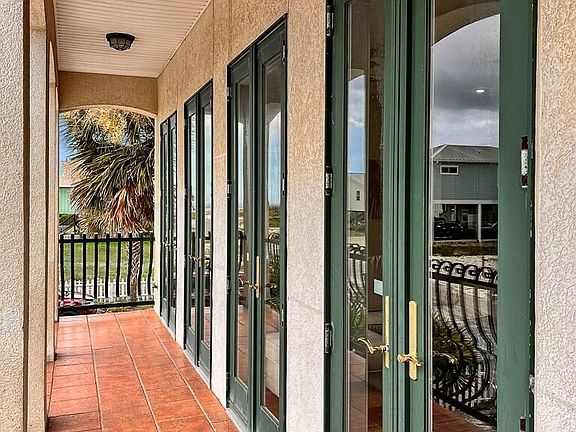 EXPERIENCE THE BEACH LIFE IN THIS 4BR/4BA MEDITERRANEAN STYLE HOME W/PEEKABOO GULF VIEWS ON N CAPE! Located just steps to sugar-white sand, this home is the ideal vacation retreat. Rich terracotta floors continue through the open concept main level creating a seamless flow to expansive covered & enclosed porches. Black granite tops dress up the kitchen space w/custom cabinetry, recessed pantry, cooktop island & breakfast bar seating. French doors lead to a separate den, bunkroom & BA. Upstairs are 3BD suites w/private balcony access & water views. Rental ready & steps to pet friendly beaches, this home is complete w/a fenced back yard, pool, outdoor shower & hot tub. Cast your fishing lines & leave the crowd behind. Make this your next investment property!