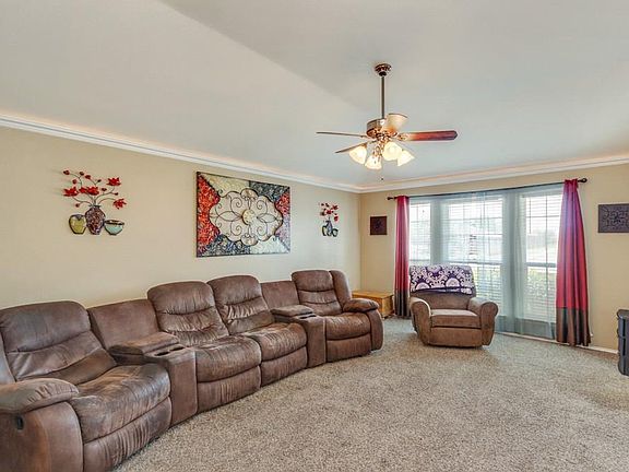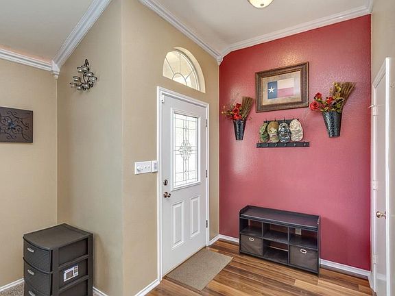Very well kept Elgin home featuring an open floor plan, tall ceilings, crown molding and wood look flooring. The laundry area offers a huge walk in pantry. Master bedroom with garden tub and separate shower. French doors lead from the master to the spacious covered back deck. The home is located just minutes from 290 for easy access to downtown Austin.