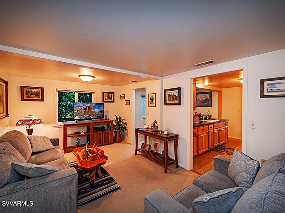 Charming Cottage Home in an amazing location, minutes from all Sedona's restaurants and stores. Partially remodeled 2 bedroom 2 bath Plus bright corner office, laundry area Updated kitchen with Granite countertops, gas range, New windows, 2 year old roof, freshly painted, huge lot w/paver patios, mature landscaping, fruit trees, fenced backyard. Double Garage/Shop Plus huge RV Garage /Shop w/Casita Guest House potential. Lots of Parking!