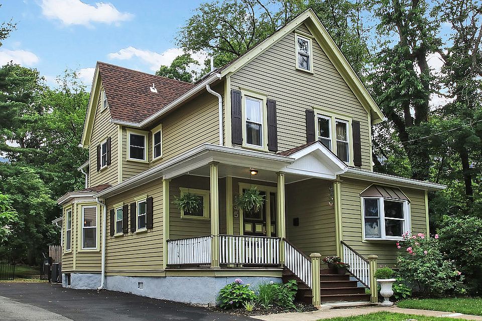 Charming turn-of-the-century front-porch colonial! This fully updated 4 bedroom, 4 bath home is the perfect blend of vintage charm and modern sophistication in the quiet, convenient Village Historic District. Foyer leads to an oversize formal living room, mudroom and full bath. Wonderful open floor plan includes kitchen with island, and sunny eating area that opens to an oversize family room. A major renovation includes a stunning gourmet kitchen with white cabinets, stainless steel appliances, Wolf Range, large pantry, and granite counters. Second floor features MBR with master bath. Two additional bedrooms with renovated jack and jill full bath and a sun deck. Third floor walk up to bedroom suite with soaking tub and WIC. Large walk-out basement with full bath, high ceilings and separate entrance for possible home office or separate apartment. Large deep yard with multiple level decks and patios. In-town living close to NYC transportation, shopping, restaurants!