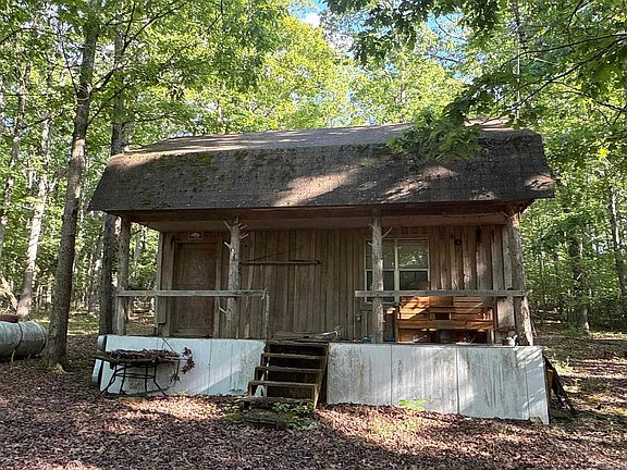 Take a look at this 700+ square foot cabin tucked away in the woods waiting on someone to occupy and care for her once again. This cabin has a welcoming front porch with a kitchen/dining combination as you walk through the door. Straight ahead is the large living room with nice wood stove. There is a bathroom off the kitchen. The stairs lead you to an open loft area with plenty of space for sleeping. This cabin has a well and is on Petit Jean Electric and their High Speed Fiber Internet is available. Outside you will find the area around the cabin to lay mostly level with great hunting opportunities. Heading to the North the property gets steeper and has additional areas to develop other cabins as well. If you are looking for a weekend and hunting retreat then this may be the property for you.