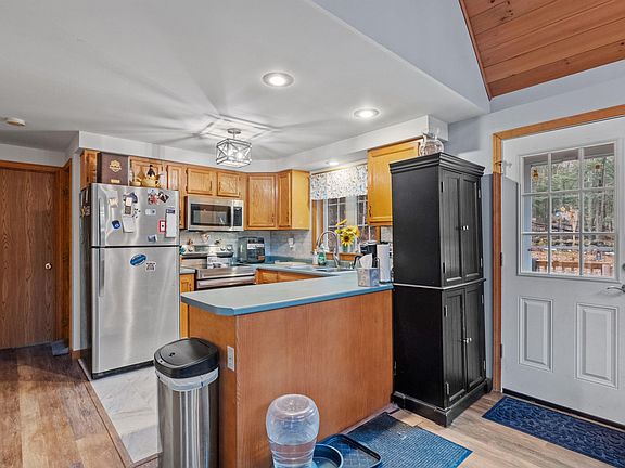 Charming two bedroom, two bath Cape on .63 of an acre with a one car garage! Naturally lit open concept kitchen, dining room and living room. Nicely appointed kitchen with oak cabinets, stainless appliances, plenty of cabinet and counter top space and pantry. Dining room with access to back deck. Warm and inviting living room with cathedral ceilings, pine woodwork and beautiful hearth with pellet stove insert. Additional family room, which could be easily converted in the future to another first floor bedroom, if needed (home has public sewer). Spacious first floor bedroom and full bath. Second level has a large bedroom with several closets/storage space with another full bath. Basement has storage space, laundry room and laundry sink. This home has had many updates/improvements within the past 2-4 years to include; hot water tank, boiler, flooring, toilets, appliances, deck, light fixtures, garbage disposal and exterior front stairs. Large back deck with a decent size back yard which is perfect for entertaining or to make into your dream back yard! This is a great opportunity at this price! Home will not last long!